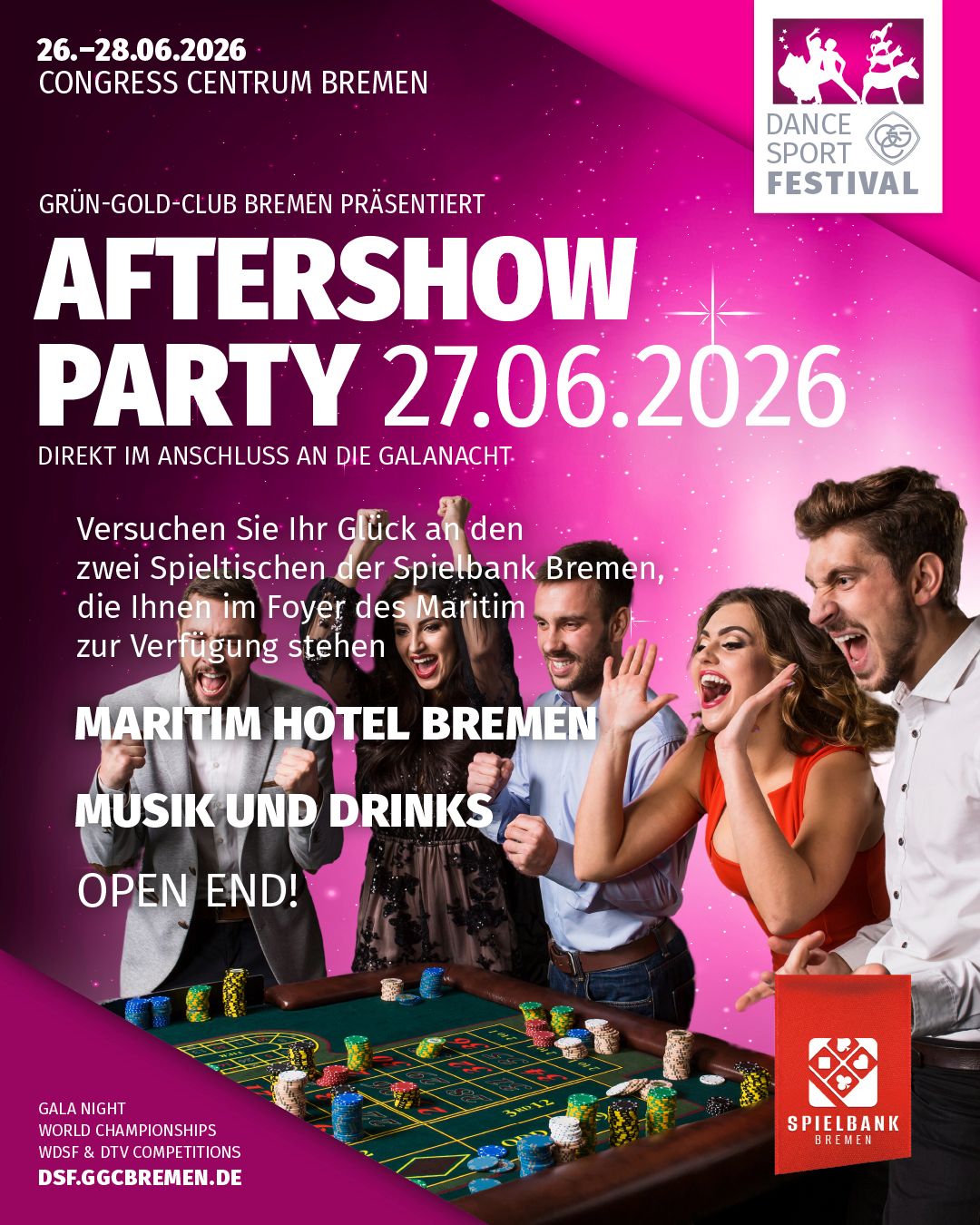As if to say “The Superstars of Dance Sport”, the presently best dance couples – national and international - and formation teams, like the A-Team of Grün-Gold-Club Bremen, will appear on the Bremen dance floor.